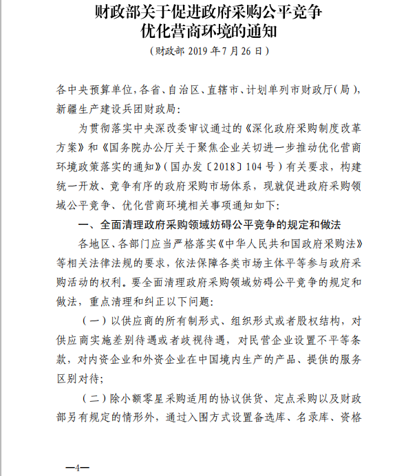 下一篇:南寧市財(cái)政局 關(guān)于進(jìn)一步優(yōu)化營商環(huán)境促進(jìn)政府采購公平競(jìng)爭(zhēng)有關(guān)事項(xiàng)的通知